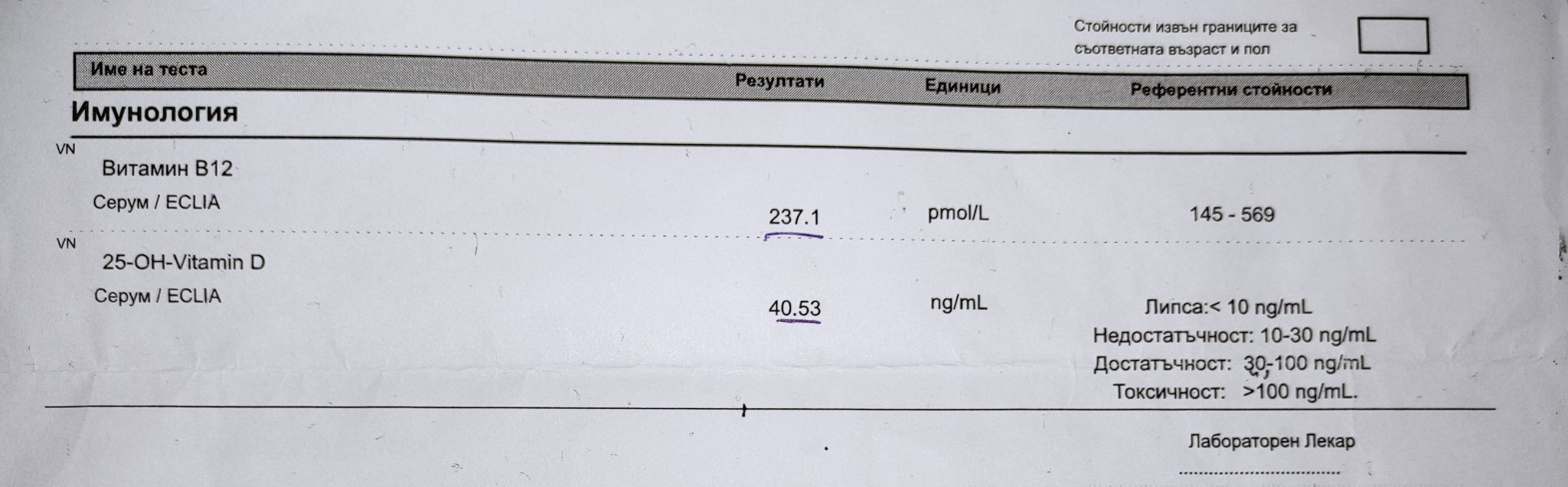 Пих Г€ровит, пих витамини с Б витамини за бременни и кърмачки, пих течен магнезий, сега започнах вит. Б12 като капки за нос, за да си повиша стойността, която след четене установих, че е ниска, въпреки, ще всички доктори твърдят, че е в норма.