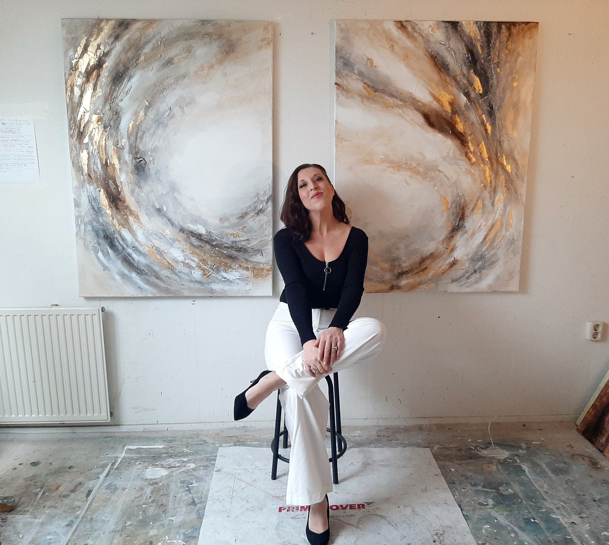 Би, честита да си! Страхотна си и фона с картините зад теб!