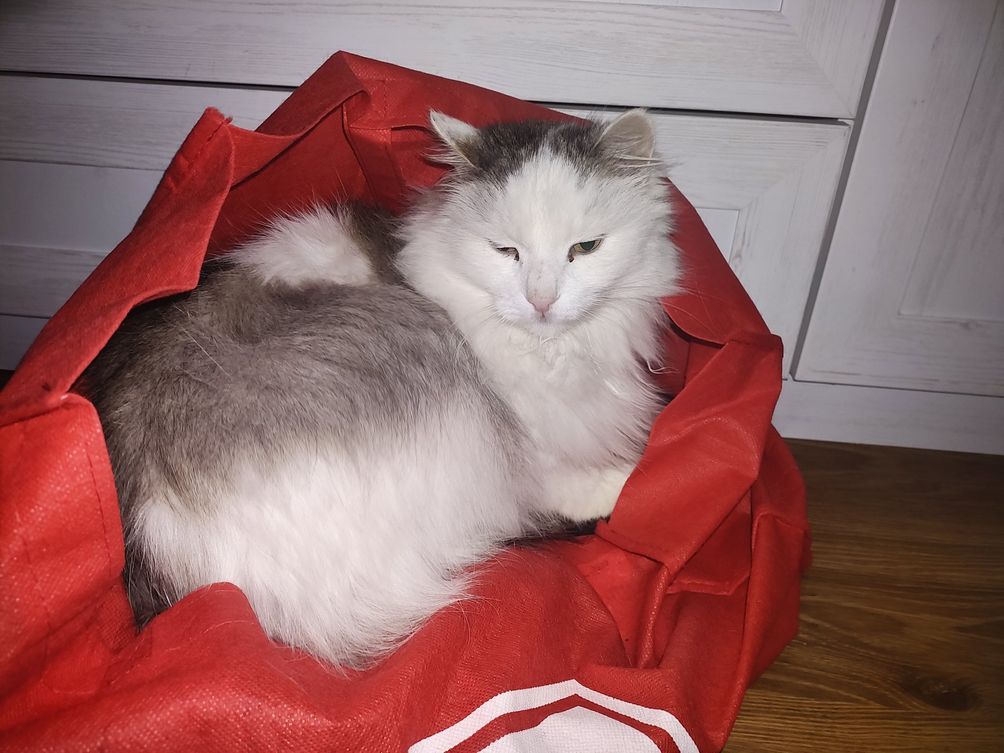 Ето, готов Памук за път, сам влезе в торбата 😂