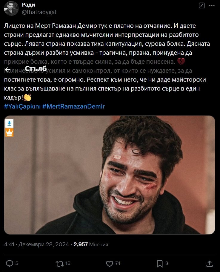 Нерде им е морала на турците за който толкова се борят и пискат и глобяват за най малкото нещо ? Каквото им напишат това играят актьорите  искат или Йок . След като рейта е нагоре ще изкарат и 100 епизода .