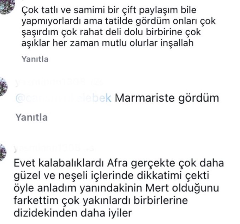 Коментар на фен който ги е видял в Мармарис заедно.Казва ,че били много сладки ,много по сладки от сериала