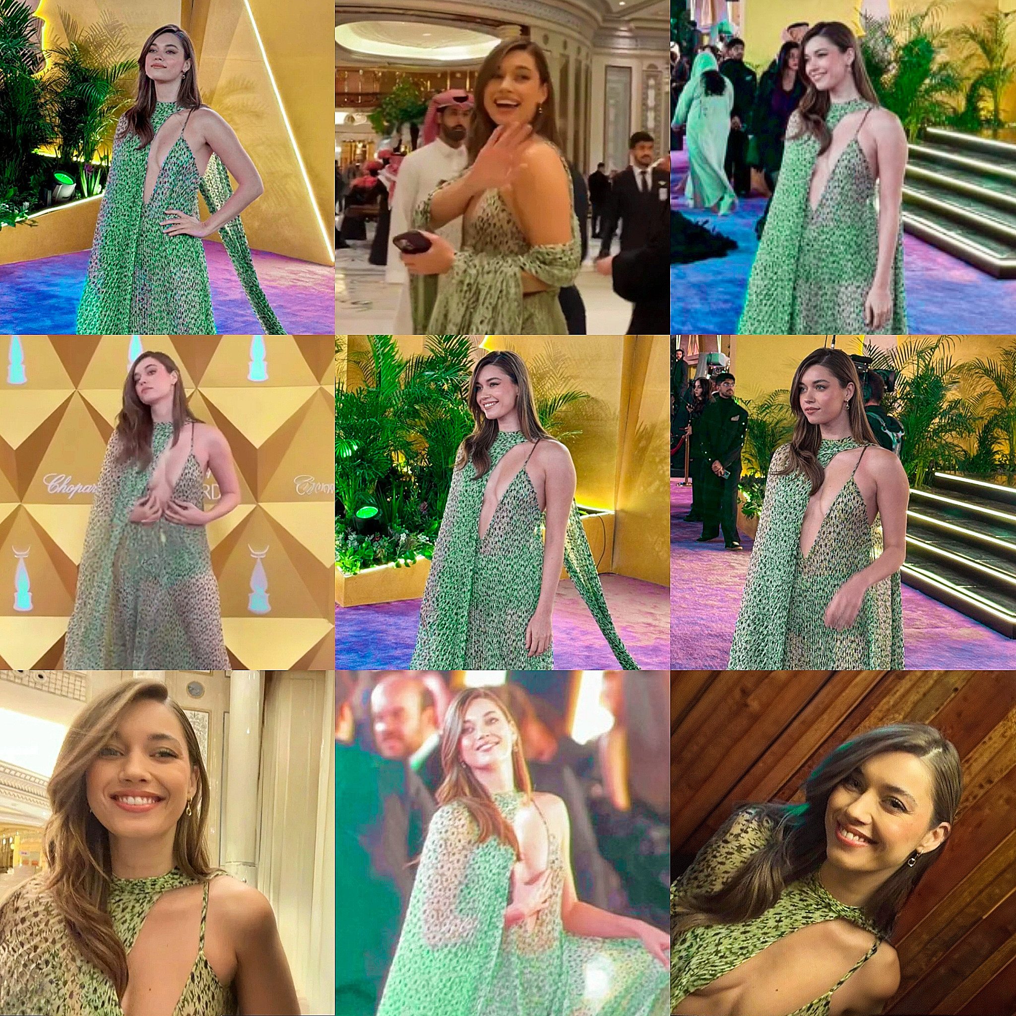 Стилиста на Афра или там който я съветва и облича е сбъркал. Тая рокля на  Гучи  е като за лятно парти и събитие.  Тук обстановката предполага да е по официална  все пак сме в Рияд при арабите и така да се разголиш.. то си личи че и Афра не се чувства удобно.  Харесва ми прическата и грима.  Иначе Туба и Ханде са елегантни и красиви. Имат повече опит на такива събития.  Фахрие не я видях в цял ръст на снимка ,но тоалета и мисля че е черна рокля.  Баръш Ардуч е страхотен.  Пу ,пу:heart_eyes:  и Бирсен също го е похвалила.