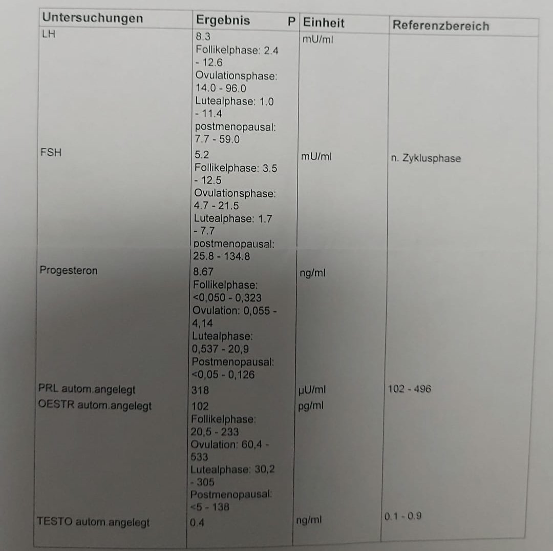 Резултатите на чинка ми, която е на 43 години . Два неуспешни опита за инвитро, правени са четири дни преди МЦ. PRL - пролактин, OESTR - естрадиол, TESTO - тестостерон.