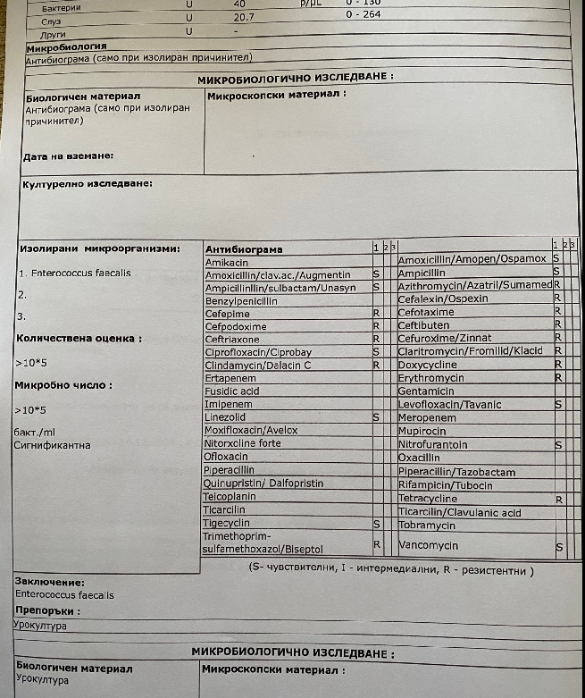 magina Със сигурност се касае за бъбречен проблем. В урината е открита бактерия. Жената да ходи на лекар да и изпише антибиотик. При тези стойности на креатинина, пикочната киселина и наличието на плоски епителни клетки трябва да посети нефролог. Да се обърне внимание и на ниския хемоглобин!