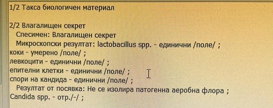 Находките в микробиологията не подлежат на лечение, поне на този етсп. Малко коки и спори, но си остава съмнение за теб.