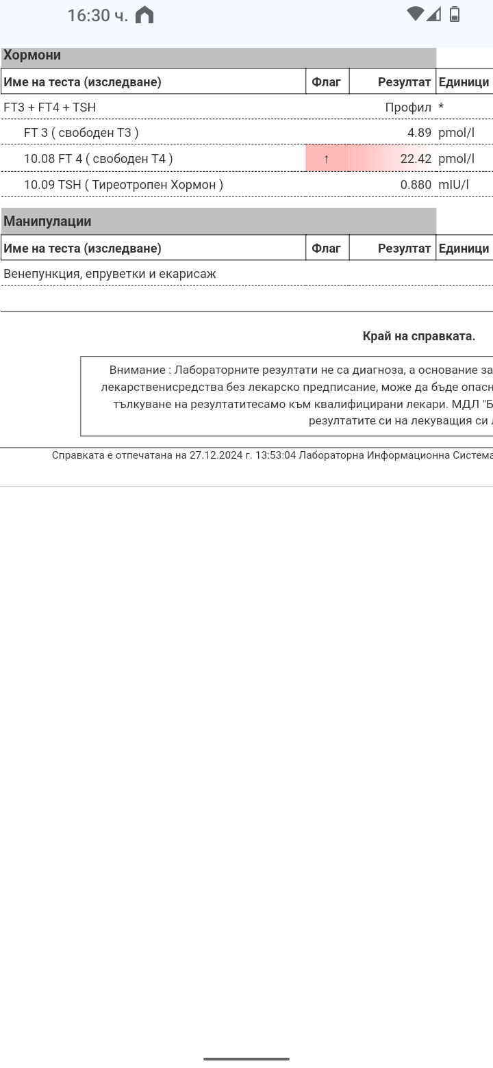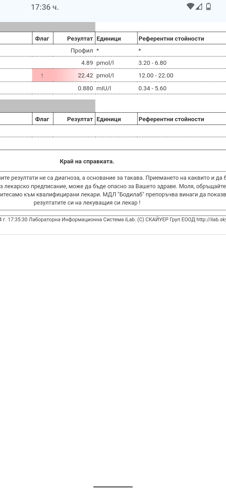 Katq, може и да е започнал автоимунен процес. Проследи се. Тоест може да провериш пак хормони след 2 седмици и пусни и AntiTPO (MAT).