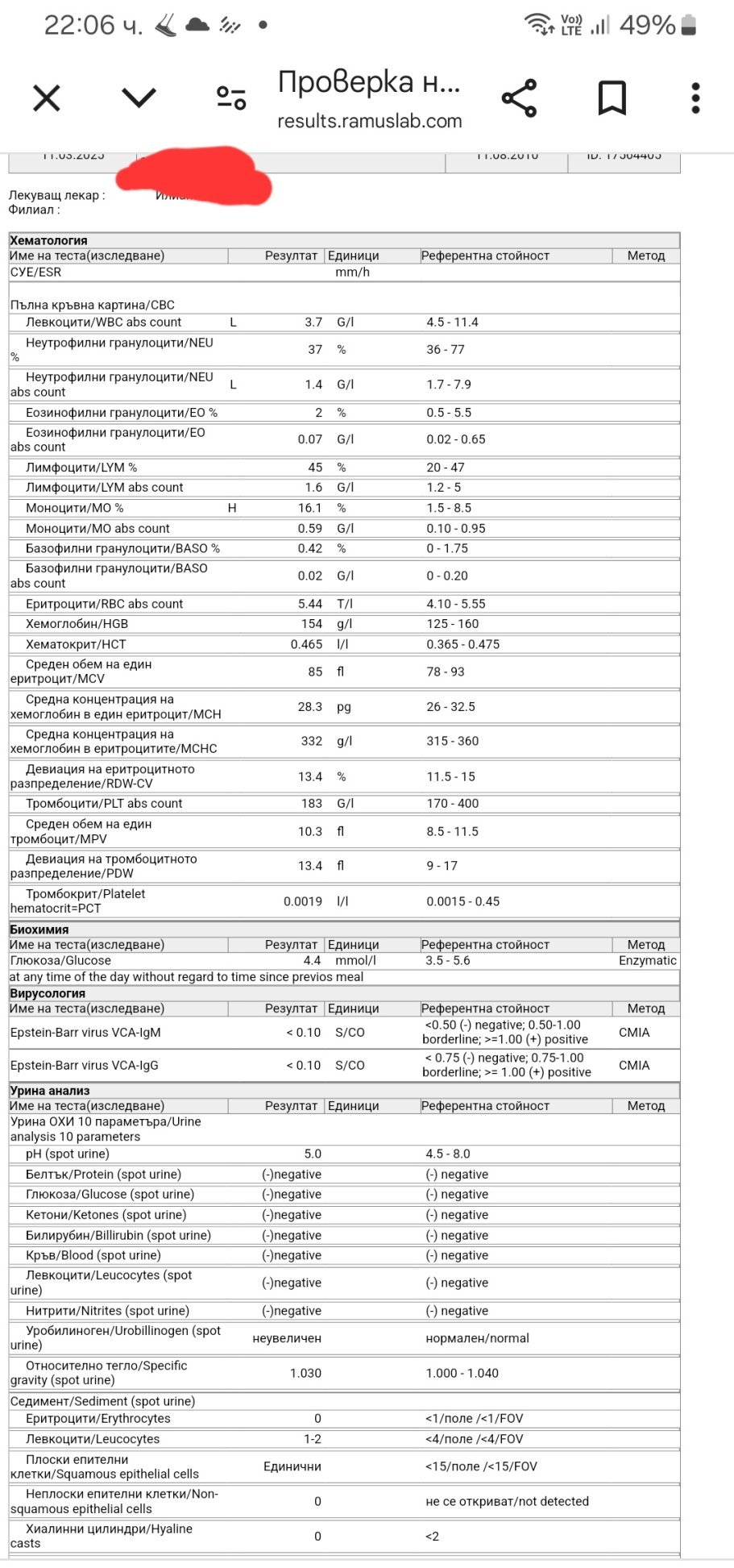 Папа6ка, нещата изглеждат вирусни. Помислих си за мононуклеоза, но гледам сте пуснали и е негативен. Имате ли доверие на лабораторията? Изследвахте ли за грип и рсв?