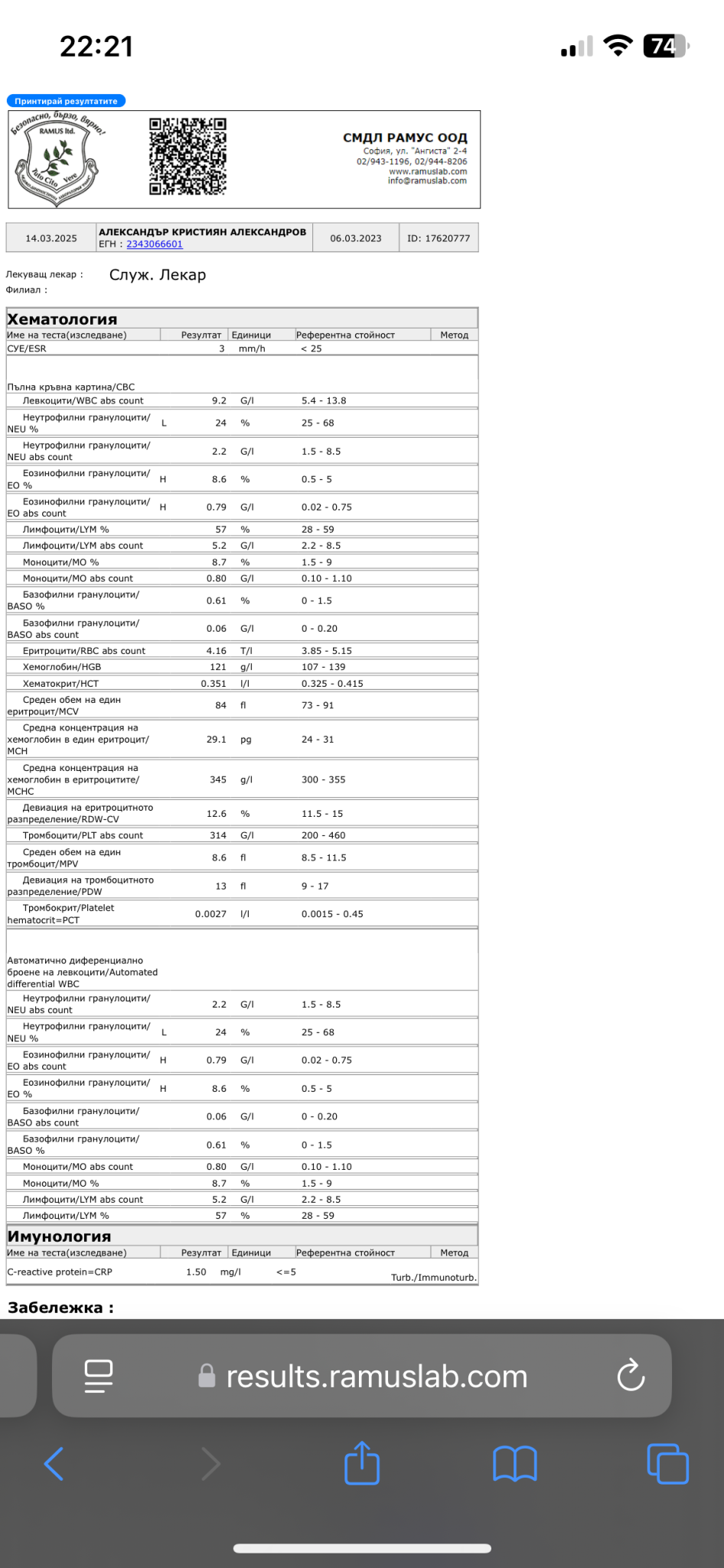Здравейте това са изследванията на синът ми който е на 2 години изключително съм притеснена относно завишените еозинофилни гранулоцити . В понеделник имаме час при педиатъра , но догажда просто ще се побъркам . Много бих се радвала ако някой ми ги разчете преди това .