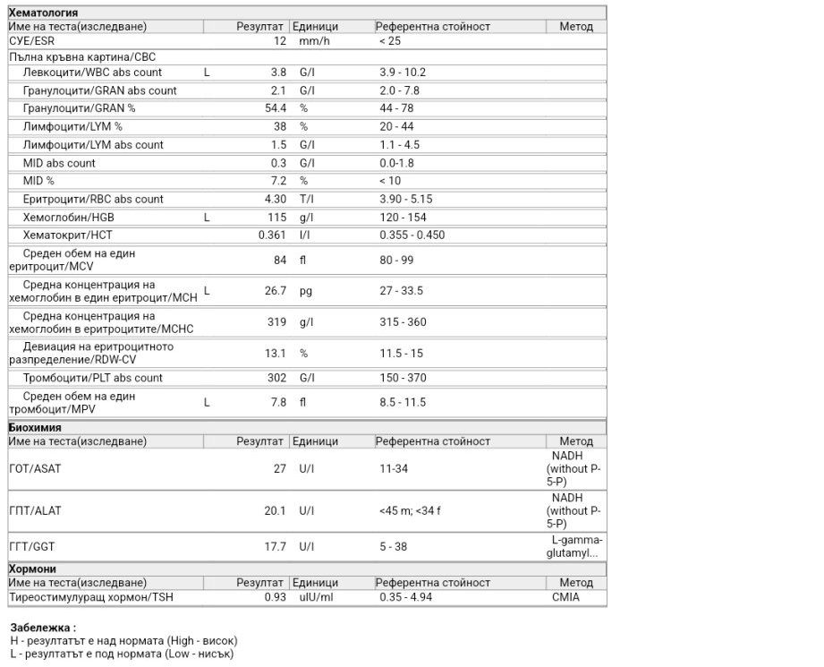 Аз бих препоръчала да се изследват Желязо+ ЖСК, Феритин, фолиева киселина и Б12. Иначе само с ПКК и хемоглобин може да се направи извод за евентуална анемия и до там. Ако ще пускате нови изследвания, пуснете и вит Д.