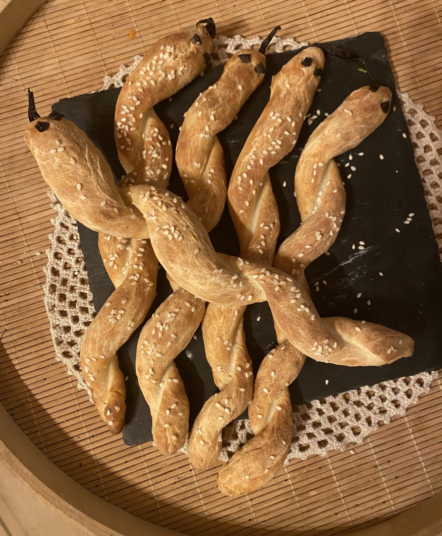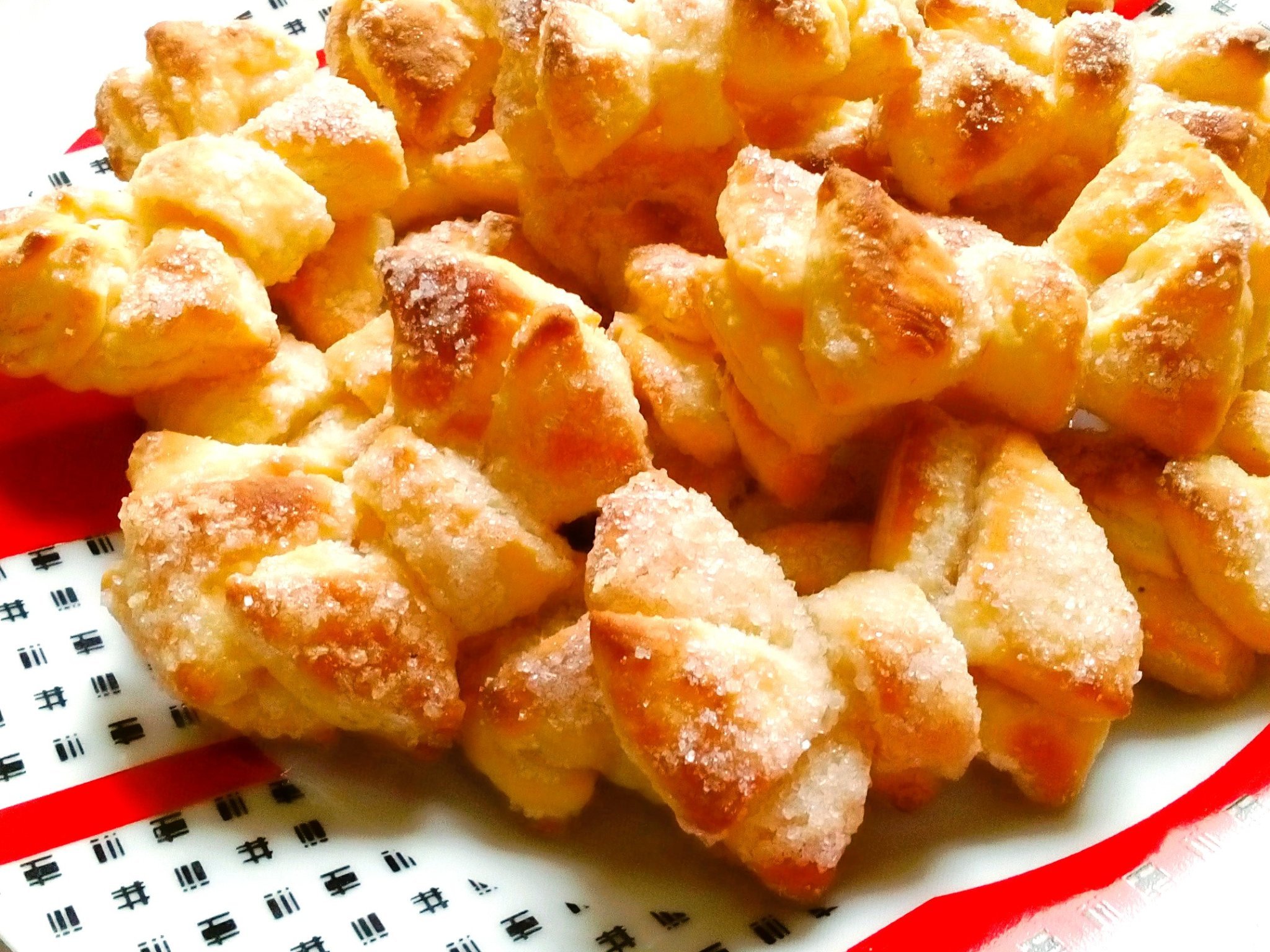 Замесих стандартното тесто за "балеринките", но ги оформих като панделки. Така ми харесаха повече, надуват се и са буквално като от моноглистно тесто.