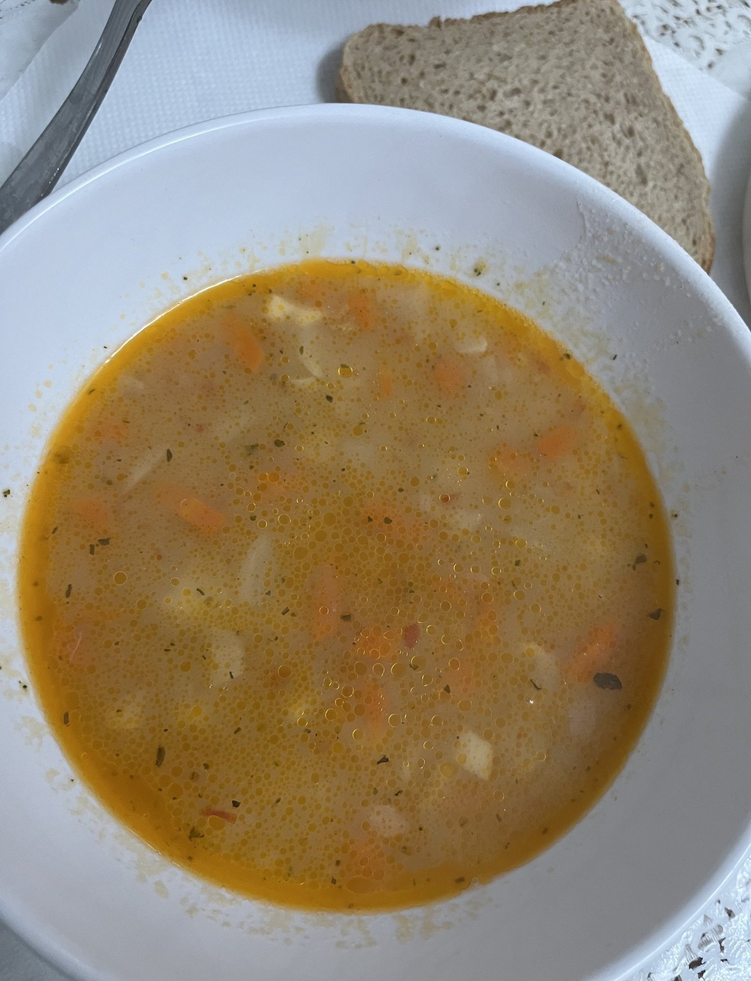 А днес вариация на бешамел ( св. мас, 🥕,брашно и пр. мляко,сол и къри ) около островче от ориз 🍚 + мъничко колбас :