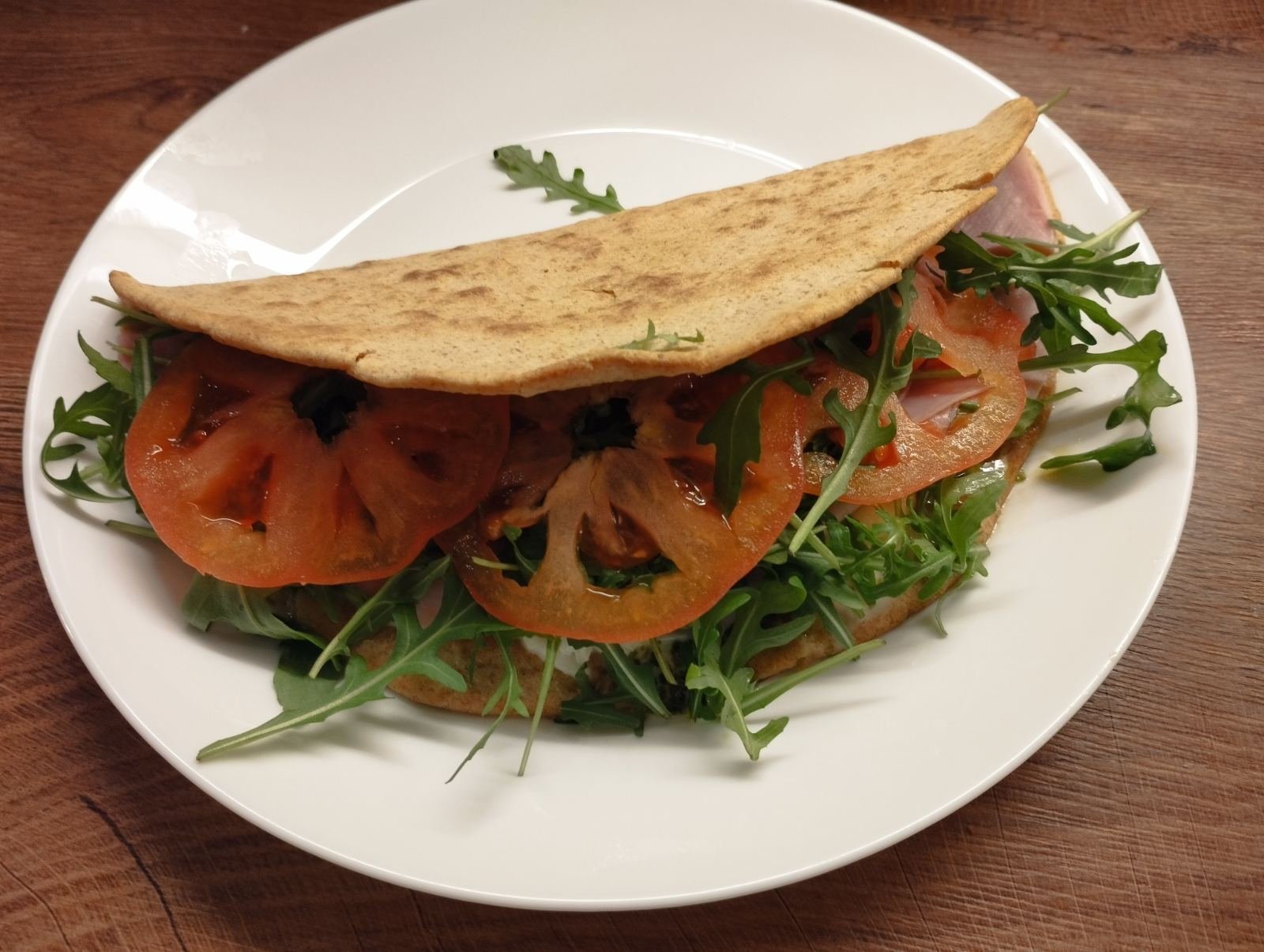 Пиадини от пълнозърнеста спелта с шунка, моцарела и рукола