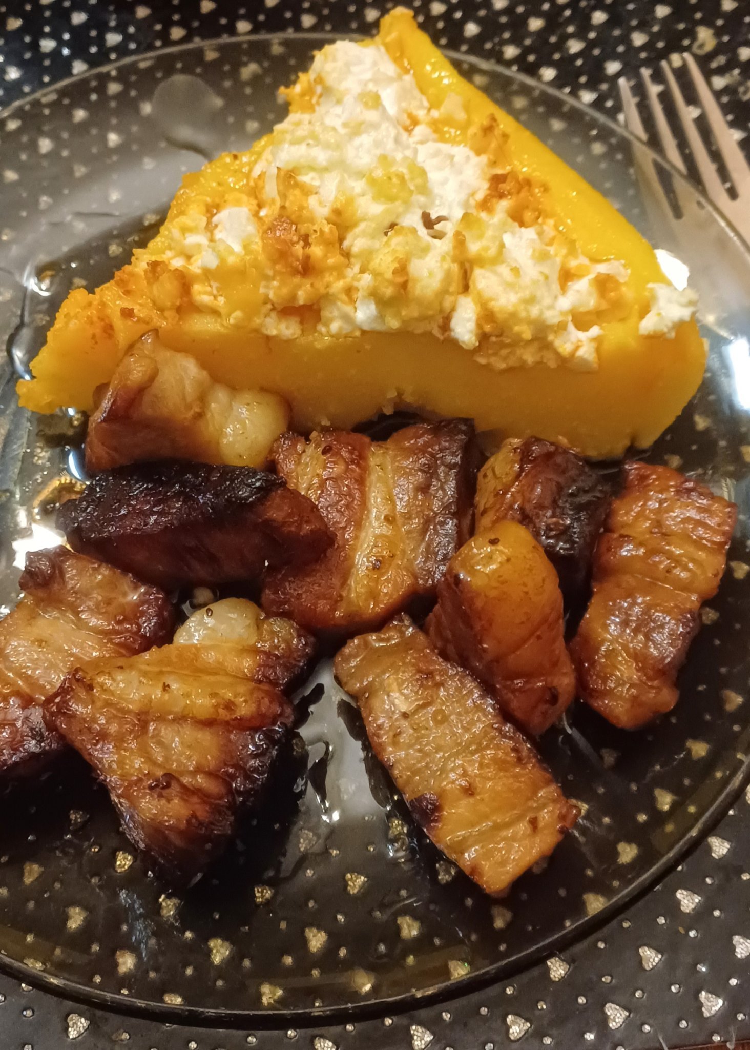 За вечеря качамак и още нещо (бях болна този месец и мм ходи да купува храна от кулинарен магазин наблизо, та му поръчах да ми вземе качамак ако има... нямаше... и откакто има ме зарина с него 😂).
