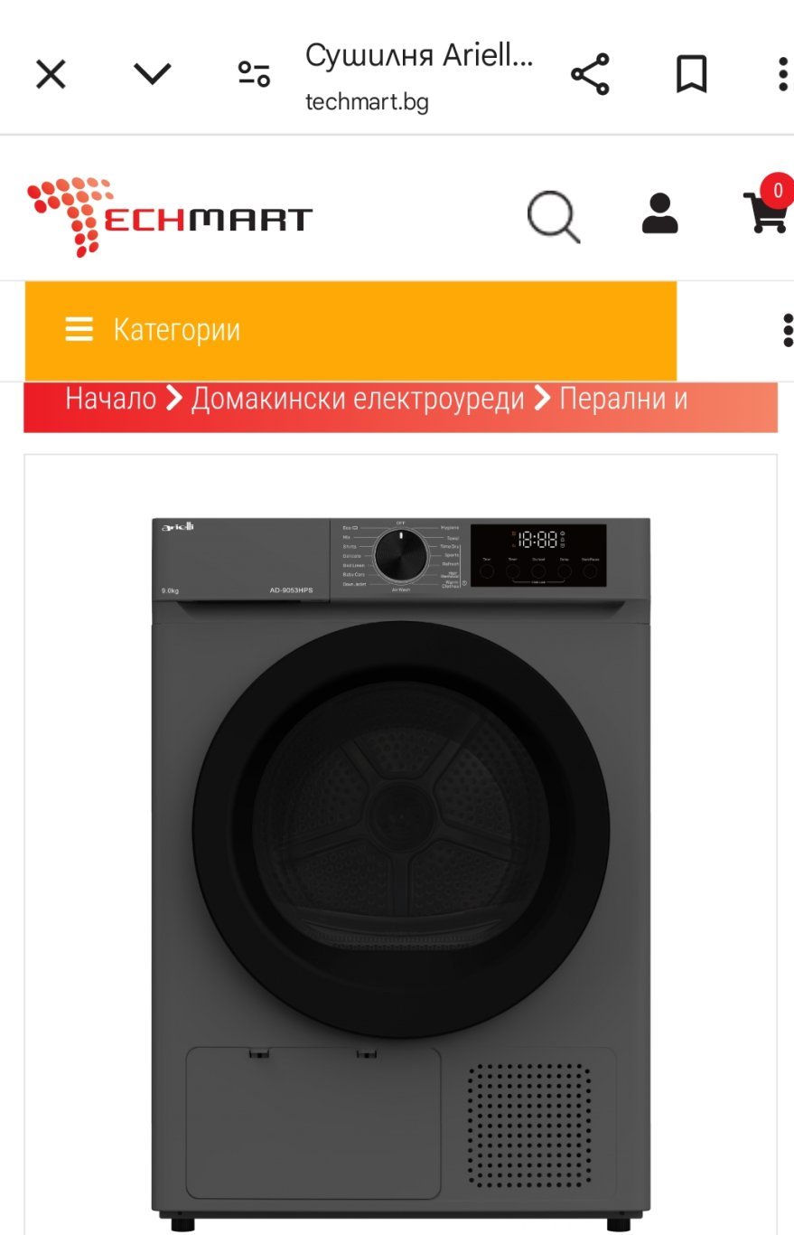 Съгласен съм с горното мнение, че Ариели не е марка  на техмарт предлагат се например и в метро. И още нещо за технологии :  Сушилнята с термопомпа се отличава със своята енергийна ефективност и страхотни резултати от сушене. Типичната кондензационна сушилня изсушава дрехите по-бързо от модела с термопомпа, но консумира много повече енергия.  По-скъпи са сушилните с термопомпа и се водят по-висок клас. Не бъркайте технологиите.