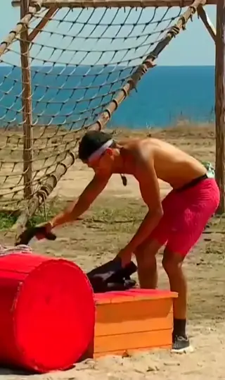 Плуват 60 метра ; теглят стрелковата кула до платформата с помощта на ритловиците, като кулата тежи около 120 кг. ; на върха на кулата е тръбата за фунийки ; цепят дърво с брадва, за да срежат въже ; след това коват дъски за мост ; след това се изкатерват на моста и започват да стрелят с фунийките ; като спукат балон минават по хималайската стълба и отиват на масата на късмета, където са поставени 40 обърнати купи, по 20 за двамата, като трябва да отворят по двойки повтарящите се сивмоли