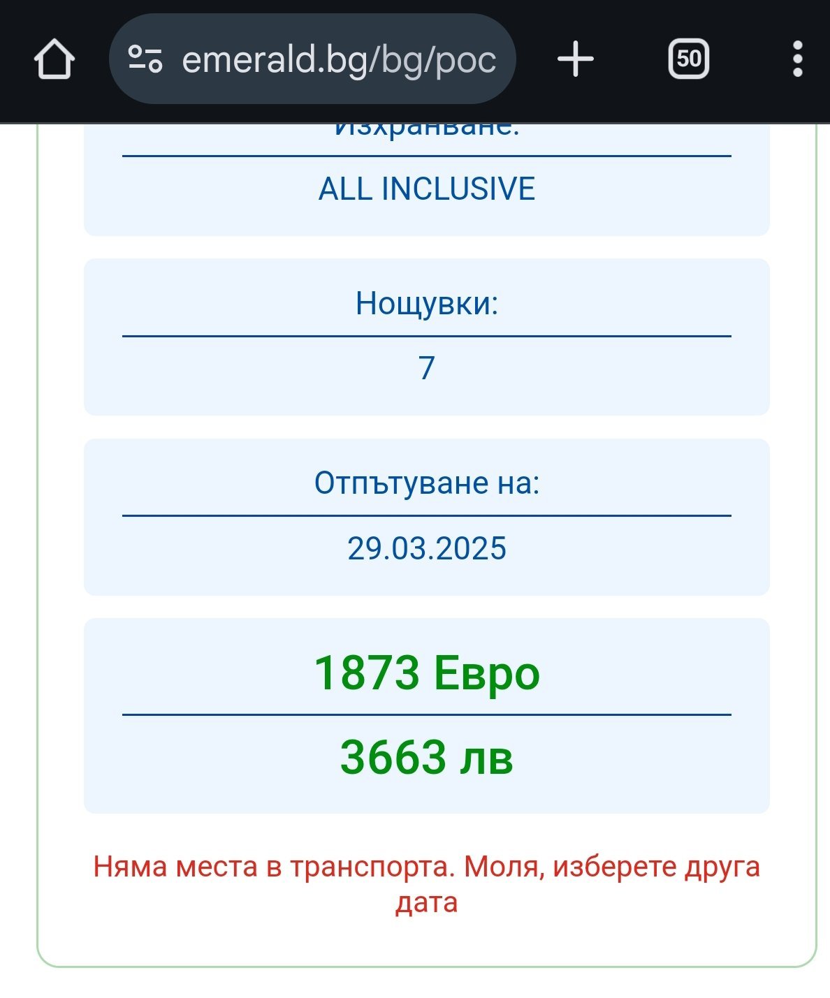 Е, аз гледам в резервационната им система директно. Няма места за ваканцията. На сайта им пише същото.