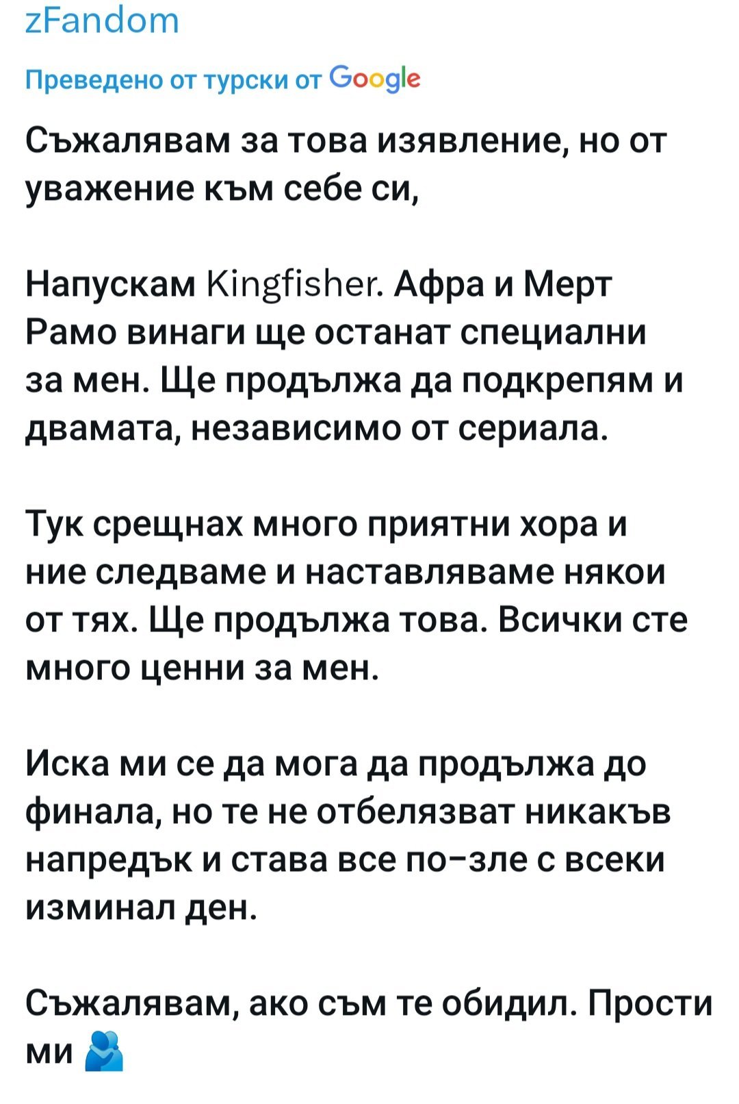 Ако това е истина, то Суна никога не е обичала Аби, а за Ферит не е невъзможно. Той намери повод да бъде с кака, че колко му е със Суна бързо да забрави, че е сестра на Сейран. Още помня страстта му към кака и тук е същото. Тези сцени ги играе еднакво в този сезон и затова имаме чувството, че СейФер са мъртви, няма я магията им. Малко проблясваше от нея в няколкото сцени докато чакахме кака да се махне и след това край.