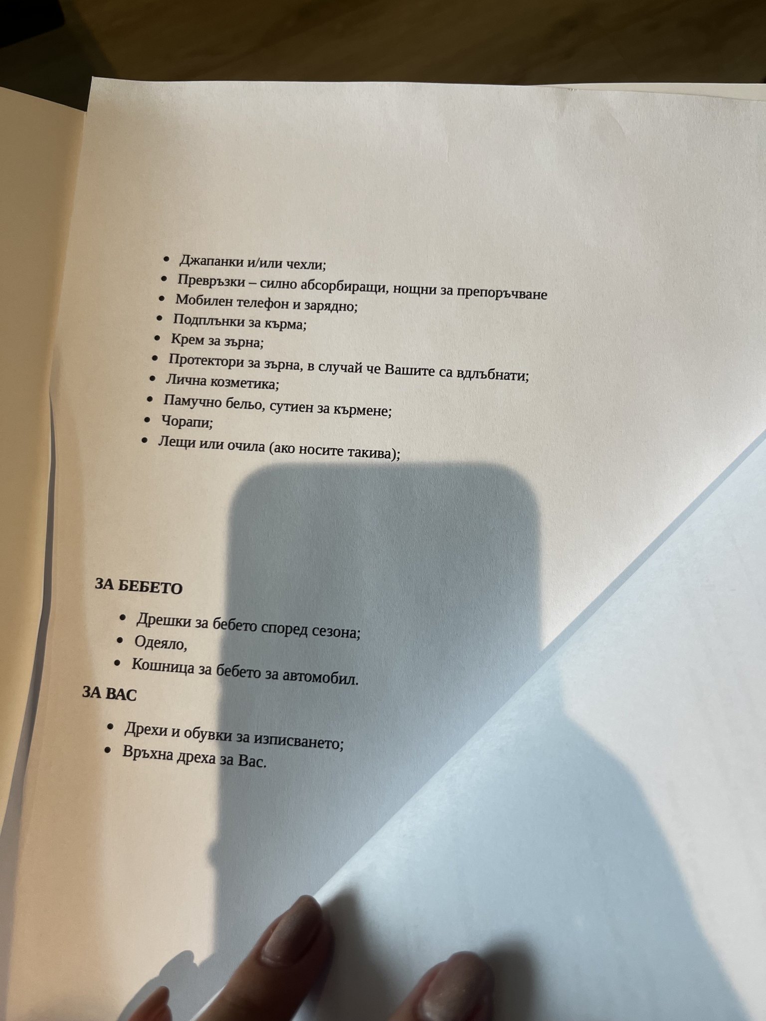 Подплънки за кърма е хубаво са си вземете, аз си взех само няколко единични бройки, не очаквах, че ще ми текнат гърдите.. та ММ сега ще ми носи.