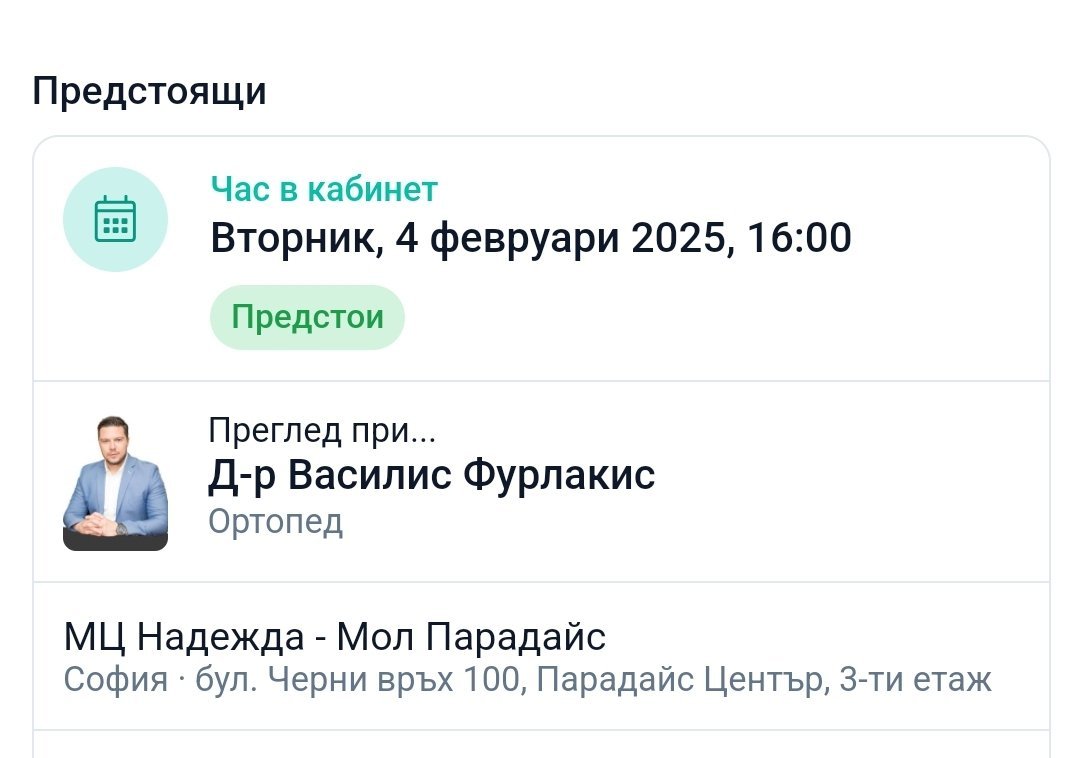 Някой беше споменал, че има час за Фурлакис и няма да го ползва. Аз имам за другата седмица, но на бебчо трябва да му правят една малка операция и няма да можем да си ползваме часа и търся друг.