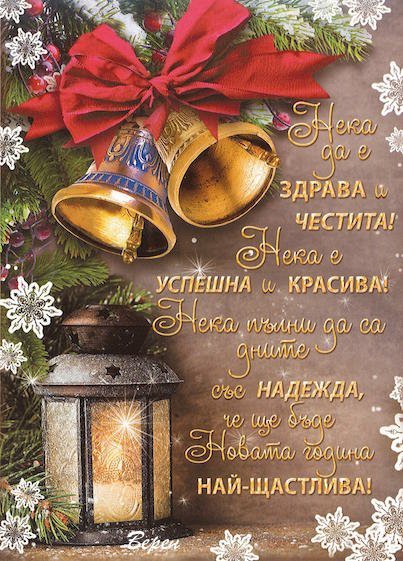 Наедно с всички прекрасни пожелания за здраве и благоденствие,аз искам да пожелая да не губите вяра в доброто,да изживявате всяко чудо със възторг,да са успешни делата Ви,да се гордеете с децата си,да имате възможност да видите нови места,да се преборите с всички неприятности и да посрещнете следващата година с всички,които обичате