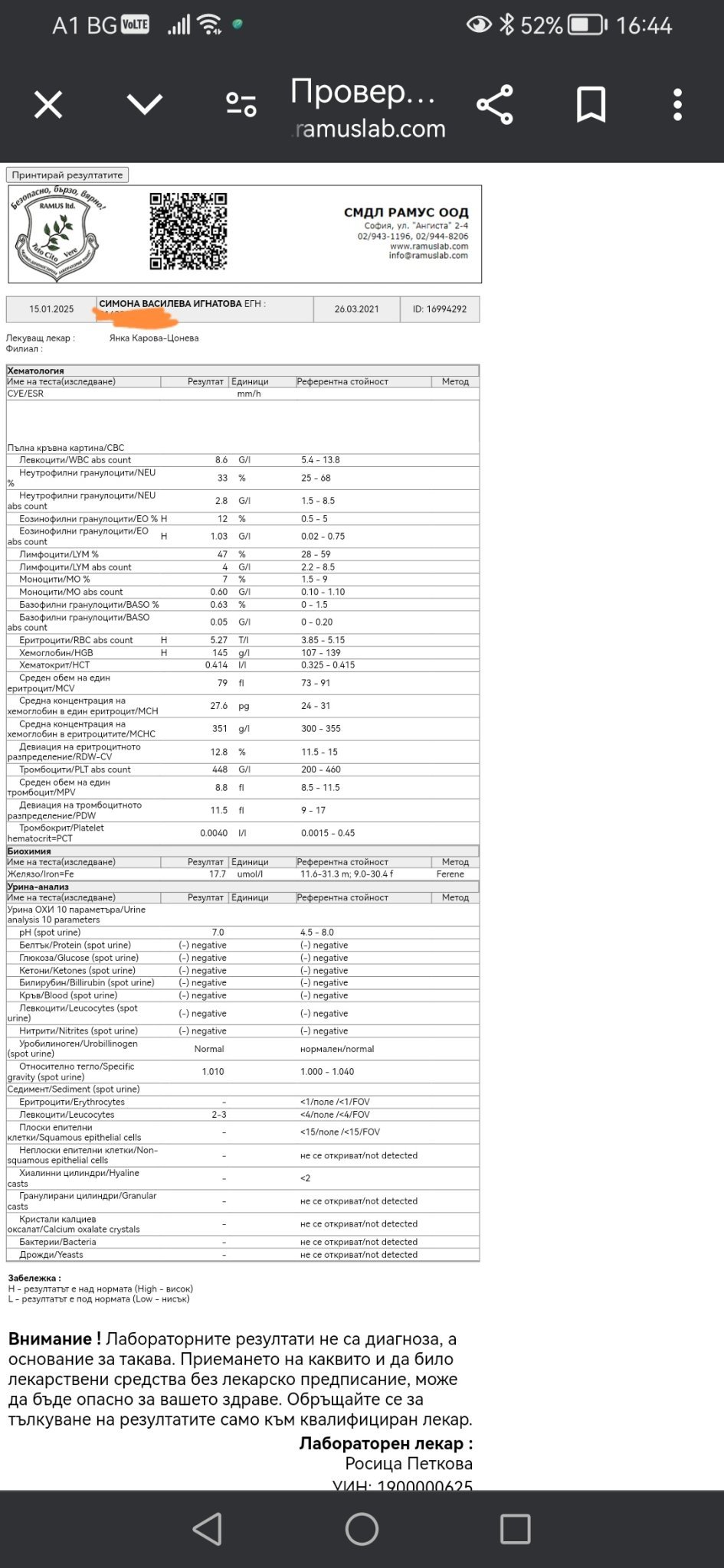 Момичета днес пуснах изследвания на малката и ме притеснява Еозинофилни гранифоцити че са доста завишени, както и хемоглобина от доста отдавна е завишен  и той. Желязо също пуснах от пръста, но не съм на ясно като е от пръста дали е добре или е нисък.