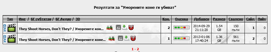 @W - за "Уморените коне..." (прекрасен филм!) - даже не съм проверявал другаде, само и направо на "зелевия щанд" - има си го. Значи ще го има и при бананите. Най-малко.