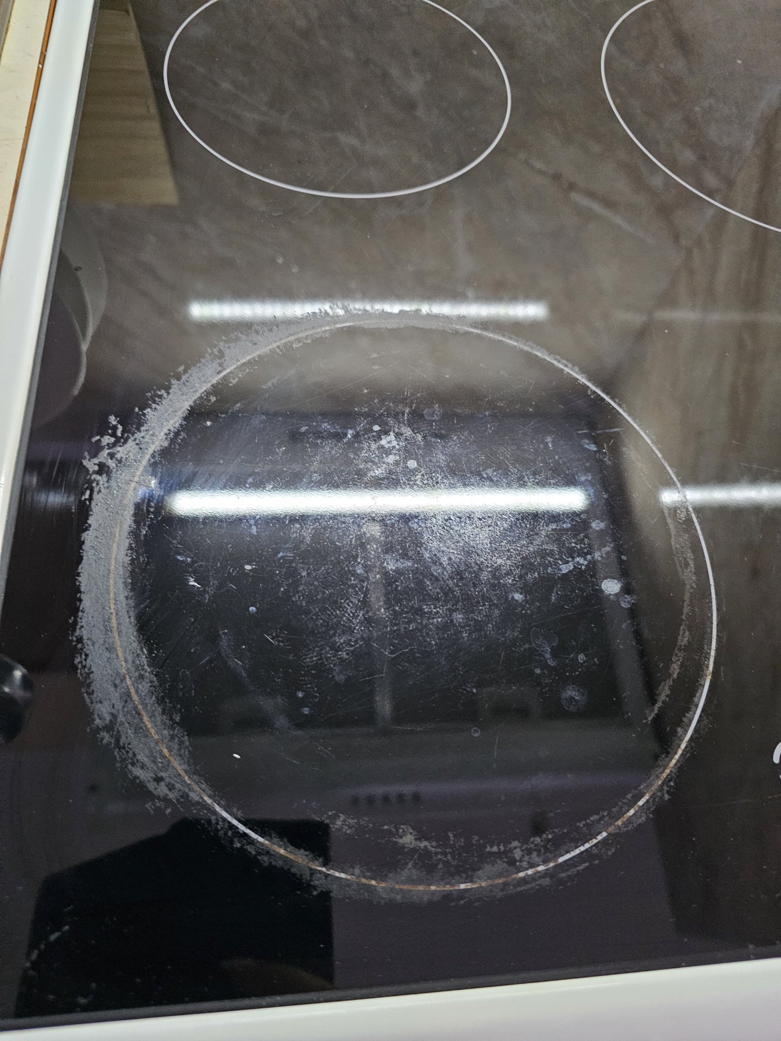 Първо трябва да го изтъркаш с ножчето за стъклокерамика. След това с препарат. Не препоръчвам обезмаслители. Ползвай нещо специално за стъклокерамика. Аз съм много доволна от тази паста на Dr.Bekmann