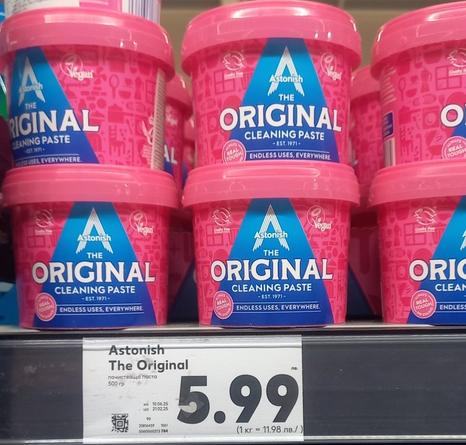 Ползвала съм паста на Астониш, дори имам в момента, но в друга опаковка. Впечатлението ми е че всички пасти на тази марка са с доста едри частици и ако чистиш нещо много фино, може да се надраска, иначе чисти добре. За по-фини неща ползвам Циф крем, върши работа. Ако съдовете ти го позволяват, може да ги свариш в голям съд със сода. След това всичко пада много лесно. Мен грил тигана ме притеснява, защото много пръска, след него трябва да мия печка и абсорбатор. Ползвала съм го само на една доста мръсна печка, която свеки държеше на балкона си.
