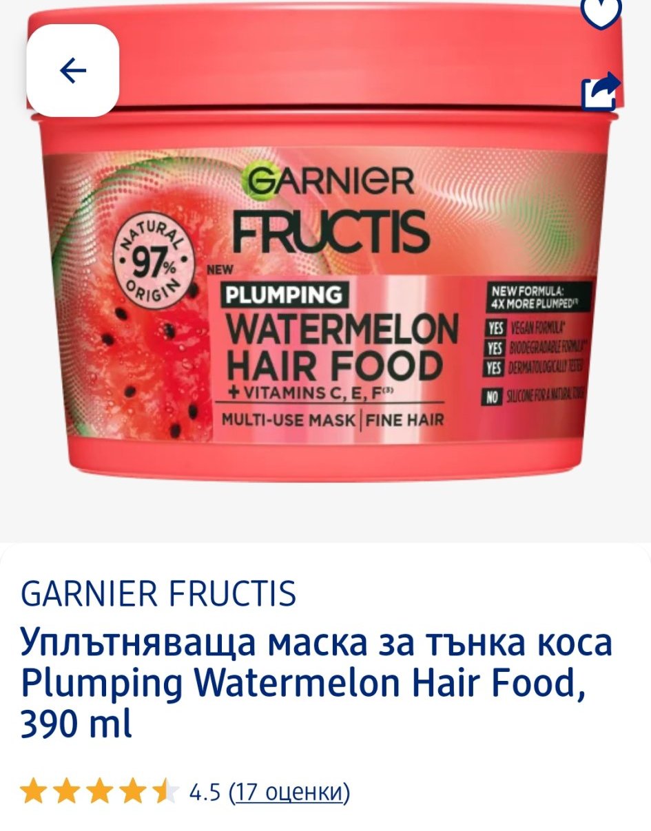 Ползвам редовно шампоана на Гарние с диня и съм много доволна. Маската дали и тя е хубава?