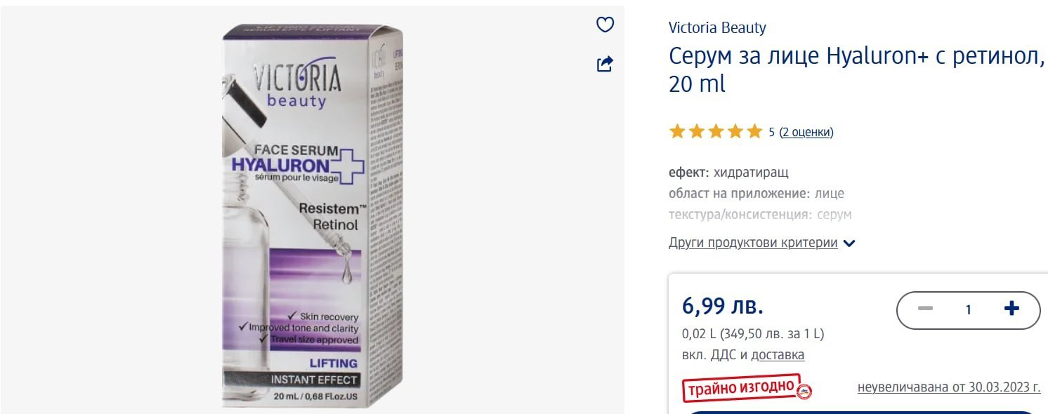 На Виктория Бюти съм ползвала серум с витамин С, също бях много доволна, а цената беше 5 лв, с някакъв купон от Кауфланд.