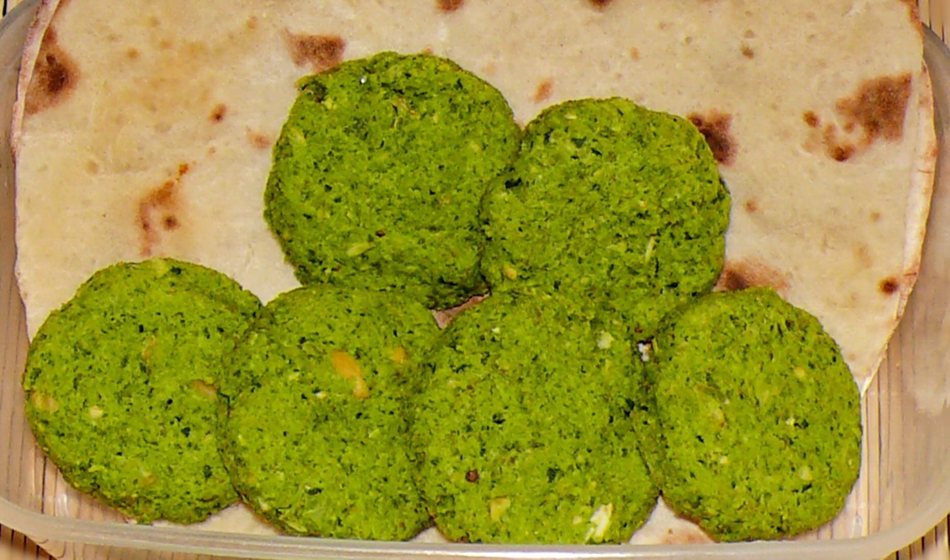 Предната вечер накисвам 1ч.ч. нахут и следващия ден пасирам с шепа спанак, 3 стръка зелен лук, 1/2 връзка магданоз, 1/2 ч.л. бакпулвер, сол и п-р, 1/2ч.л. кориандър, 1/4ч.л. кимион и 1-2с.л. зехтин. Оформям кюфтенцата и пека на хартия и на 230градуса за 5-10мин. Задължително е да се поохладят, за да стегнат и тогава да се пипат.
