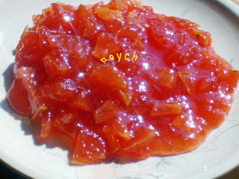 Все намалявах и намалявах захарта от класическото съотношение 1:1 плод - захар и снощи на последния конфитюр пак така намалих и сложих на 1 кг плод 700 гр захар, обаче от захарно цвекло (сръбска). Варих го 40 минути и го оставих да почива през нощта. Сега започнах да го доварявам и виждам, че сиропът ми е почти изчерпан, демек не само няма да стане течно, но и по-гъсто, отколкото исках, а на вкус киселее (нормално, дюлите си имат кисел привкус), но е достатъчно сладко - нито много, нито малко. Подозрението ми, което споделих преди,  се оказа вярно - двата вида захар нямат нищо общо и старото класическо съотношение 1:1 за повечето конфитюри очевидно е неподходящо за захарта, която не е от цвекло, но пък ще дойде добре на цвеклова захар.