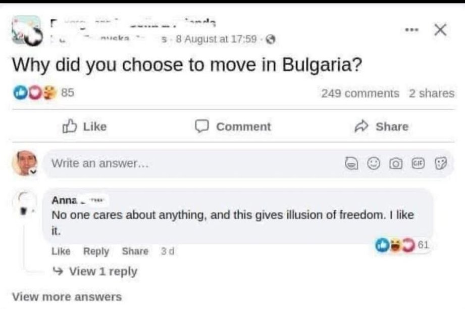 "Защото на никой не му пука за нищо и това дава илюзия за свобода. Харесва ми."
