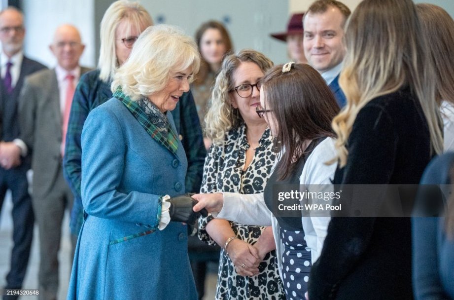 Кралица Камила, ректор на университета в Абърдийн, пристига на посещение в библиотеката на сър Дънкан Райс, за да научи повече за програмите, поддържани от университета за местната общност.