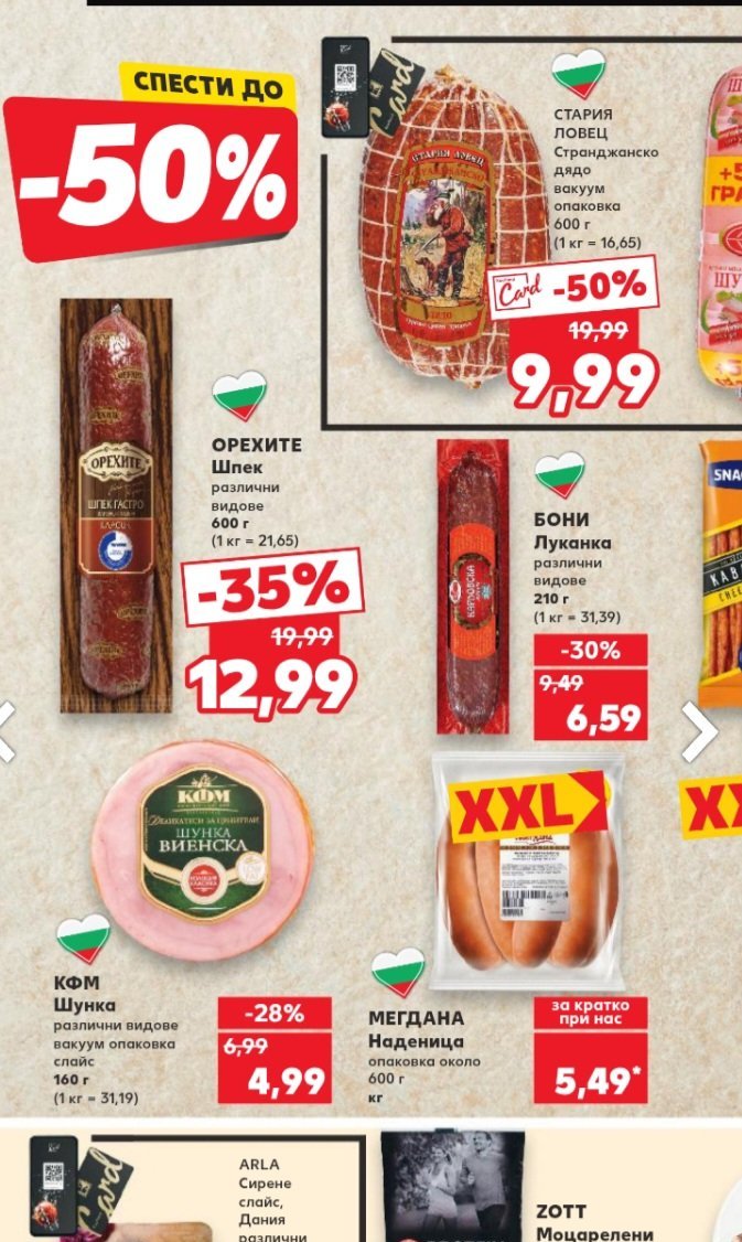 В Кауфланд от понеделник ще има на промоция от Орехите . Цените са по-високи, от луконковия салам,който е на промоция в Билла,но лично за мен той е най-лошият им продукт, твърде мазен ми идва.
