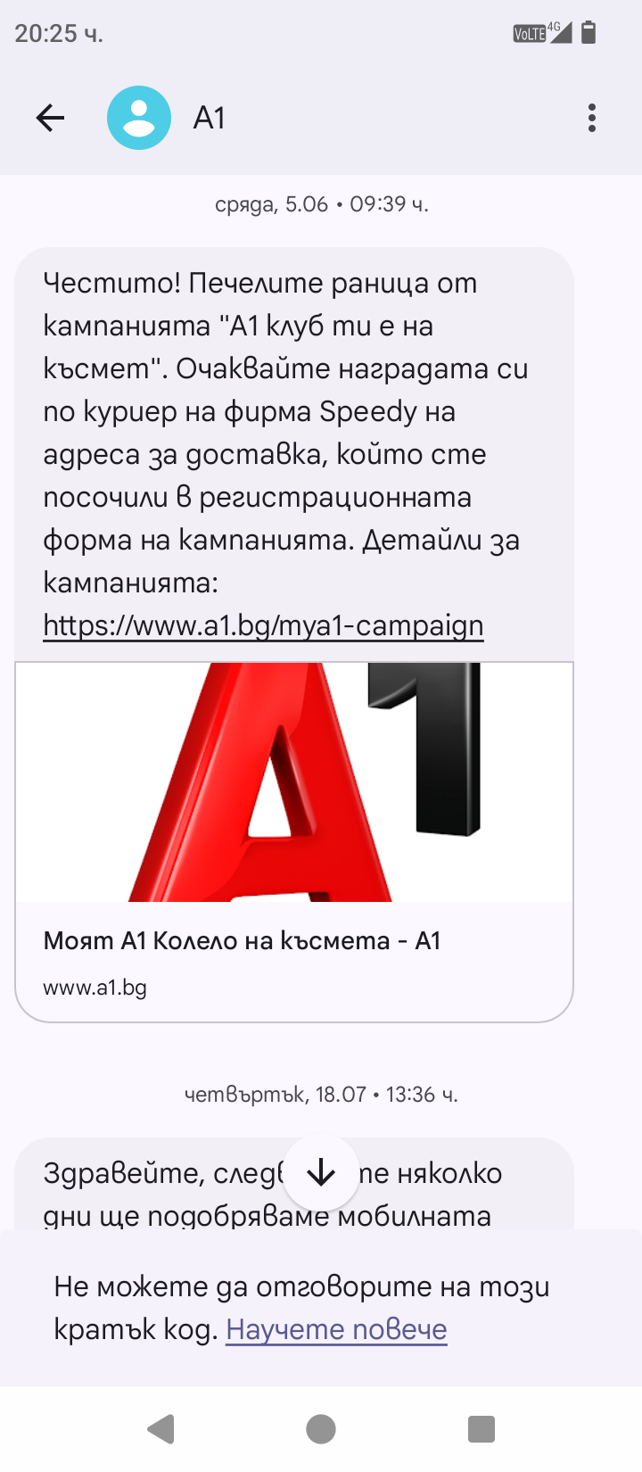 Моя мъж беше спечелил телефон. Звъннаха му в петък и събота вече беше при нас! Бързи са.
