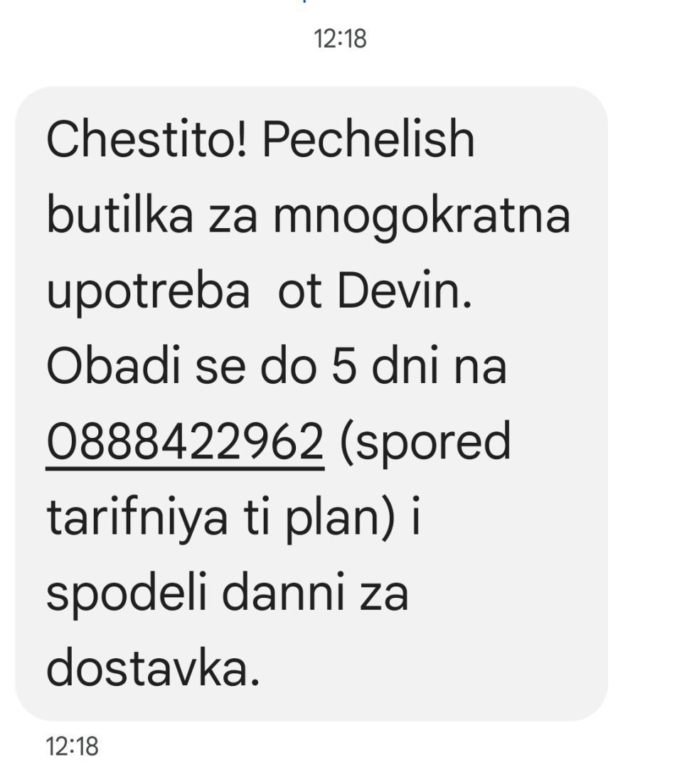 И аз съм с СМС от Девин за спечелена бутилка.