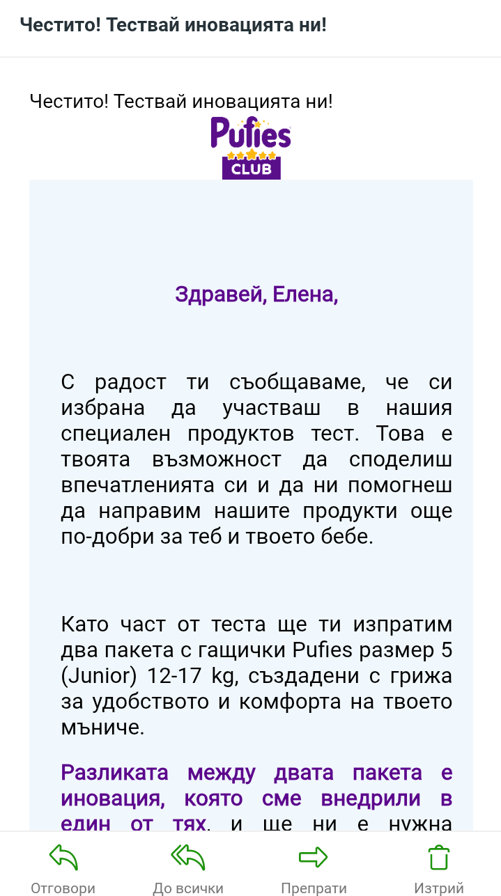 Имаха анкета и ако си я попълнила, от там ще е. Аз явно не съм ги "поласкала" или не съм им дала само "Най" на всичко, и за това ме няма 😁.