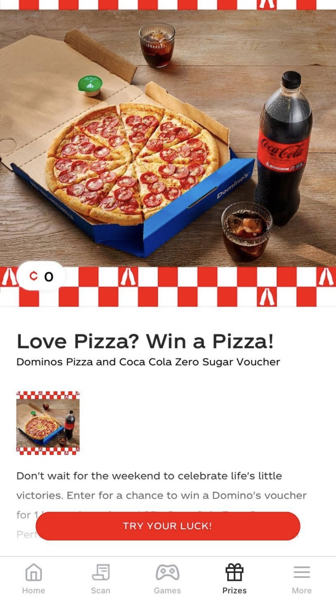 В Англия в приложението на КК моментните награди са без кодове и без диаманти. Колежка ми се похвали, че спечелила Доминос меню (пица+кола).