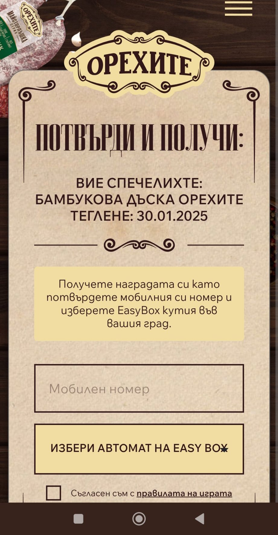 Току що получих смс от Орехите. Заявих до Изибокс.