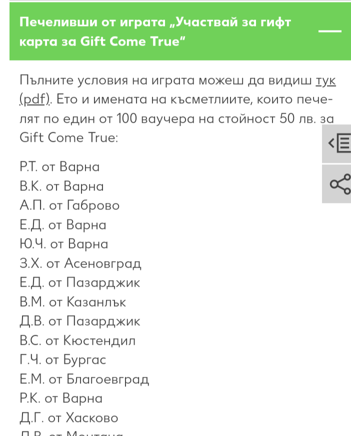 Здравейте в тази игра на Кауфланд са изтеглени само 56 печеливши,а трябваше да са 100. Виждам име като моето,не съм получавала обаждане. Има ли някой на който вече са се обадили?