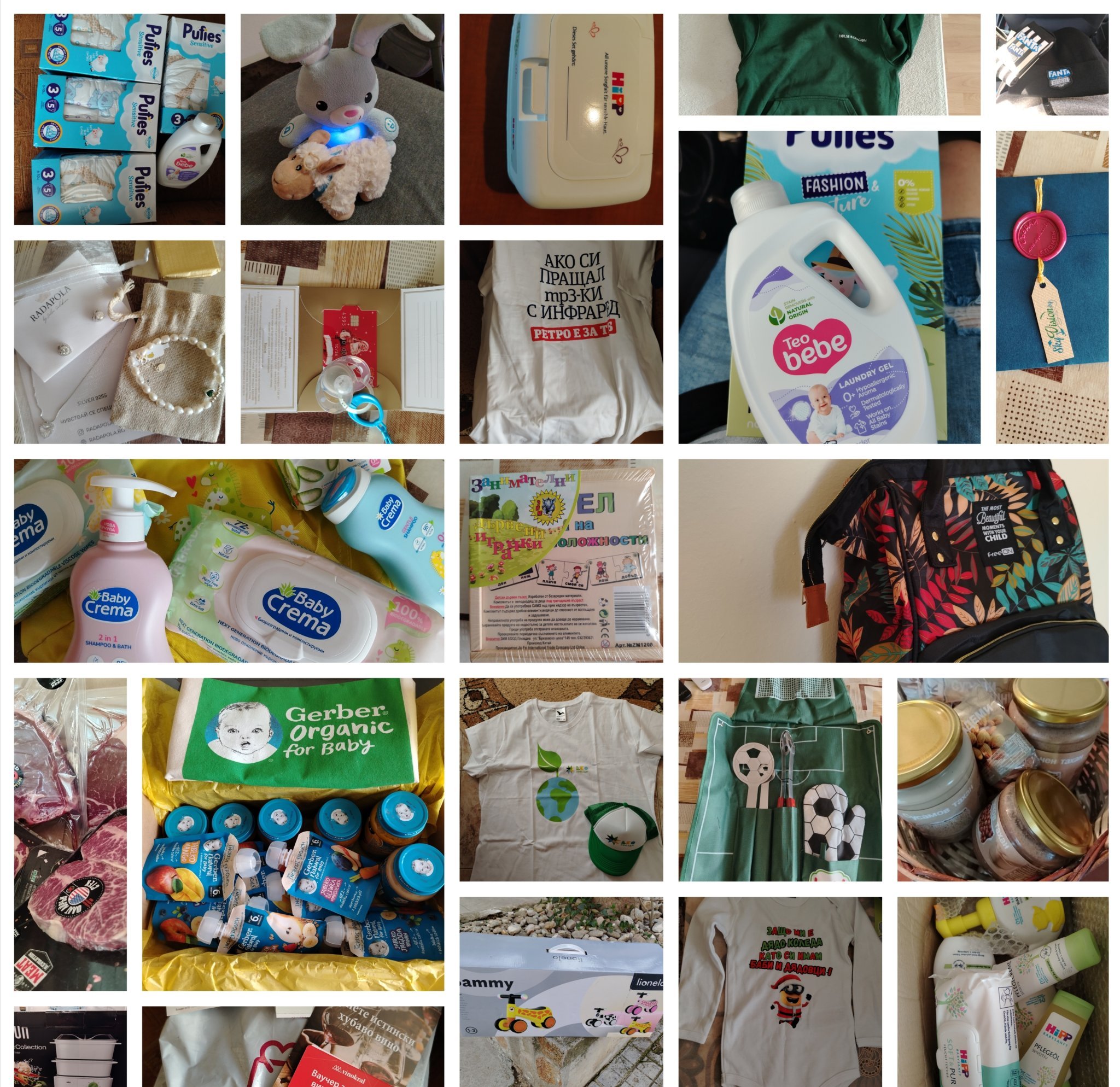 Някой питаше за равносметка, от миналата година, относно наградите. През първата половина на годината, не съм играла никъде - бяхме с новородено, гледахме с ММ да прекарваме повече време с бебето😇😇. И така, към Юли-Август отново започнах да се включвам в игри. Ето един колаж от мен, със снимките които успях да изровя в телефона си - като цяло дрехи, бебешки неща, неща за ядене 😁. Отделно имах и няколко карти със по 50-100лв за пазаруване в Кауфланд от Игри, както и някои други награди, не знайно защо не съм снимала 🤔.
