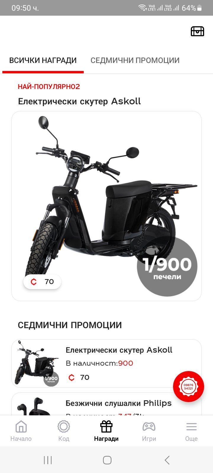 В КК приложението са пуснали скутера, който е САМО със 70 кода