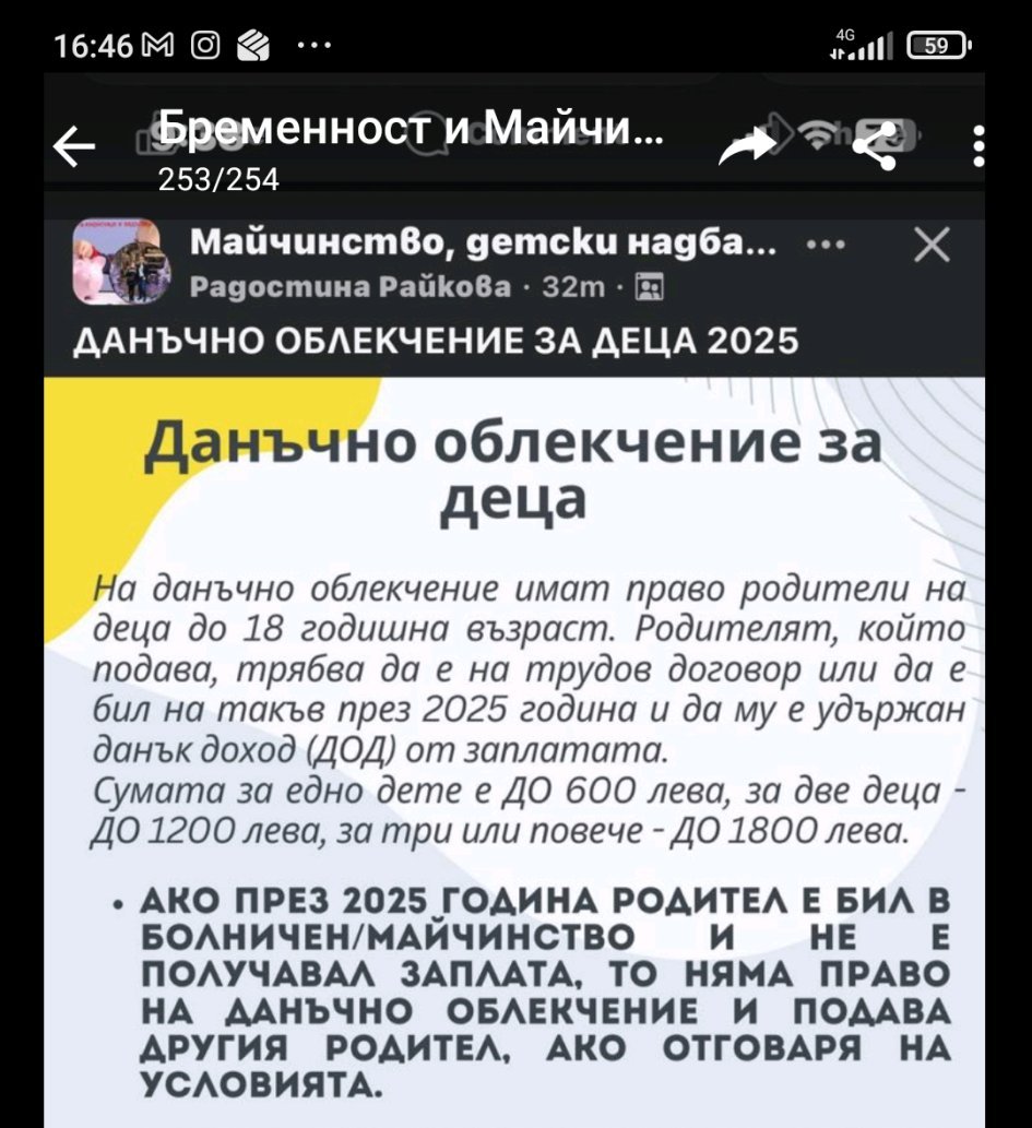 Имам един въпрос за данъчните облекчения за родители.