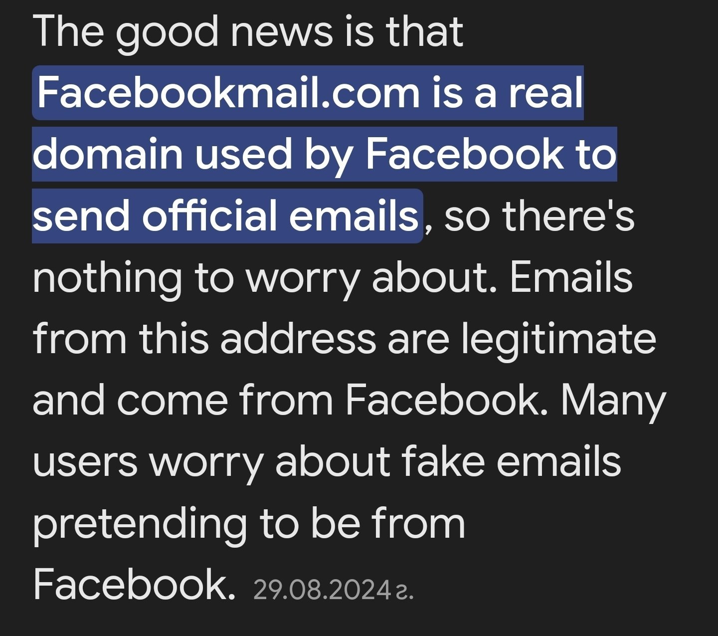 ФБ / Мета имат ли такъв адрес и домейн notification@facebookmail.com че получих доста съмнителен мейл или е скам?