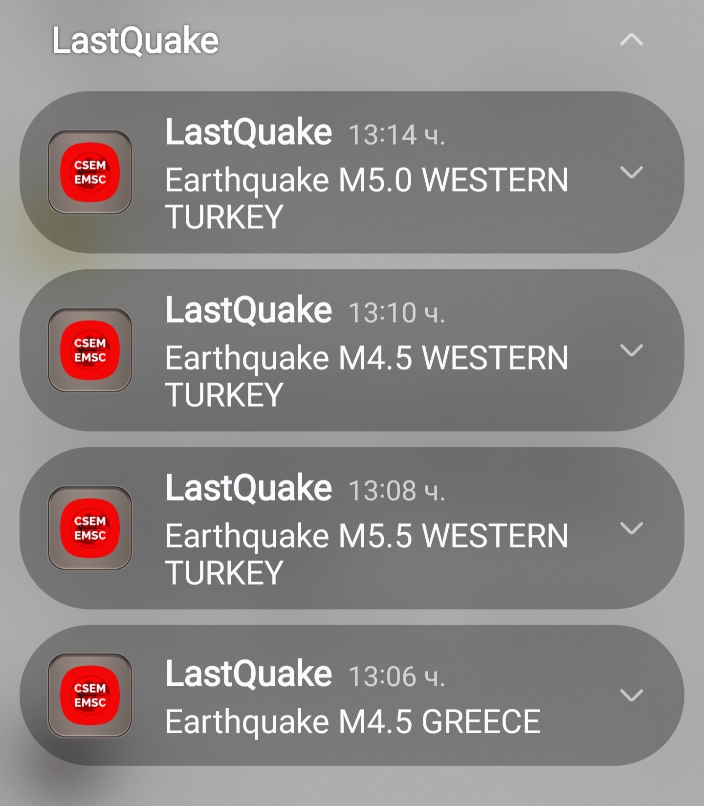 Да, и на мен някъде към Истанбул ми показа, че е земетресението. Проблемът за мен е, че е като известие на самия телефон. Имаше и съвети какво да правим и пр., но в момента в който затворих известието, вече информацията не е налична, "изпарила" се е информацията. А аз бих предпочела да е като съобщение, което мога да отворя отново в случай на нужда.
