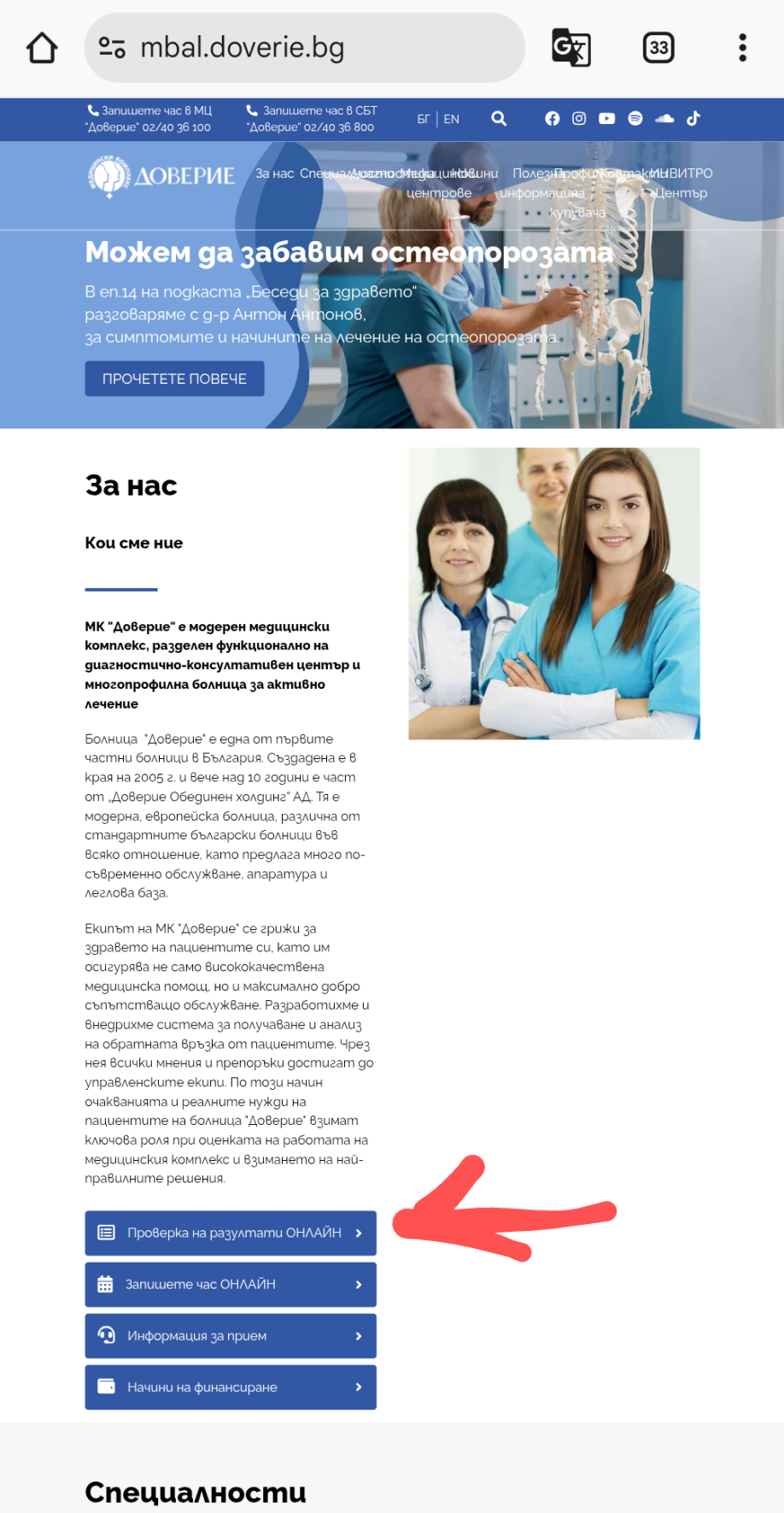 Къде се виждаха резултати от кръвни изсл-я в Доверие?