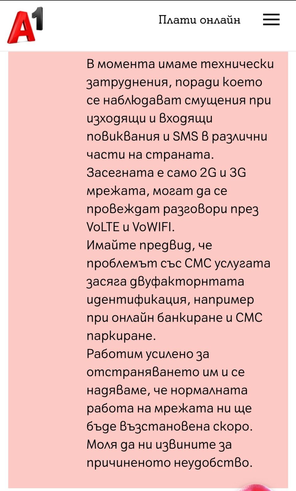 Някой абонат на А1 има ли проблем с набиране или обратно позвъняване днес? Набирам и ми дава съобщение" Номера е непълен".