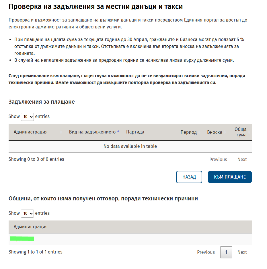 Платих наскоро данък за друго населено място в Изи пей и тасата за услугата беше 1 лв.