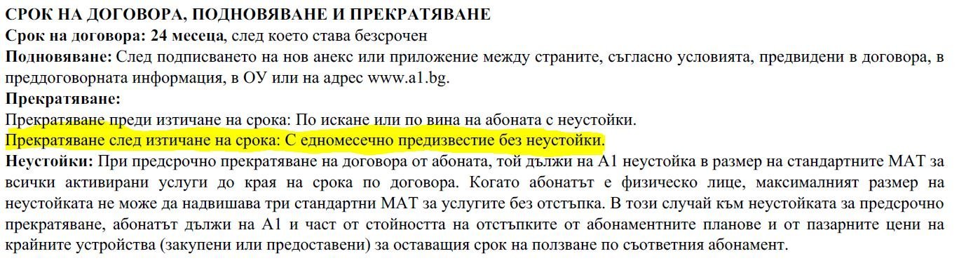 Подкрепям. Ако няма да мигрираш към друг оператор е трябвало преди месец да пуснеш предизвестие. Сега ще се наложи да платиш още една месечна такса. На свободни цени.